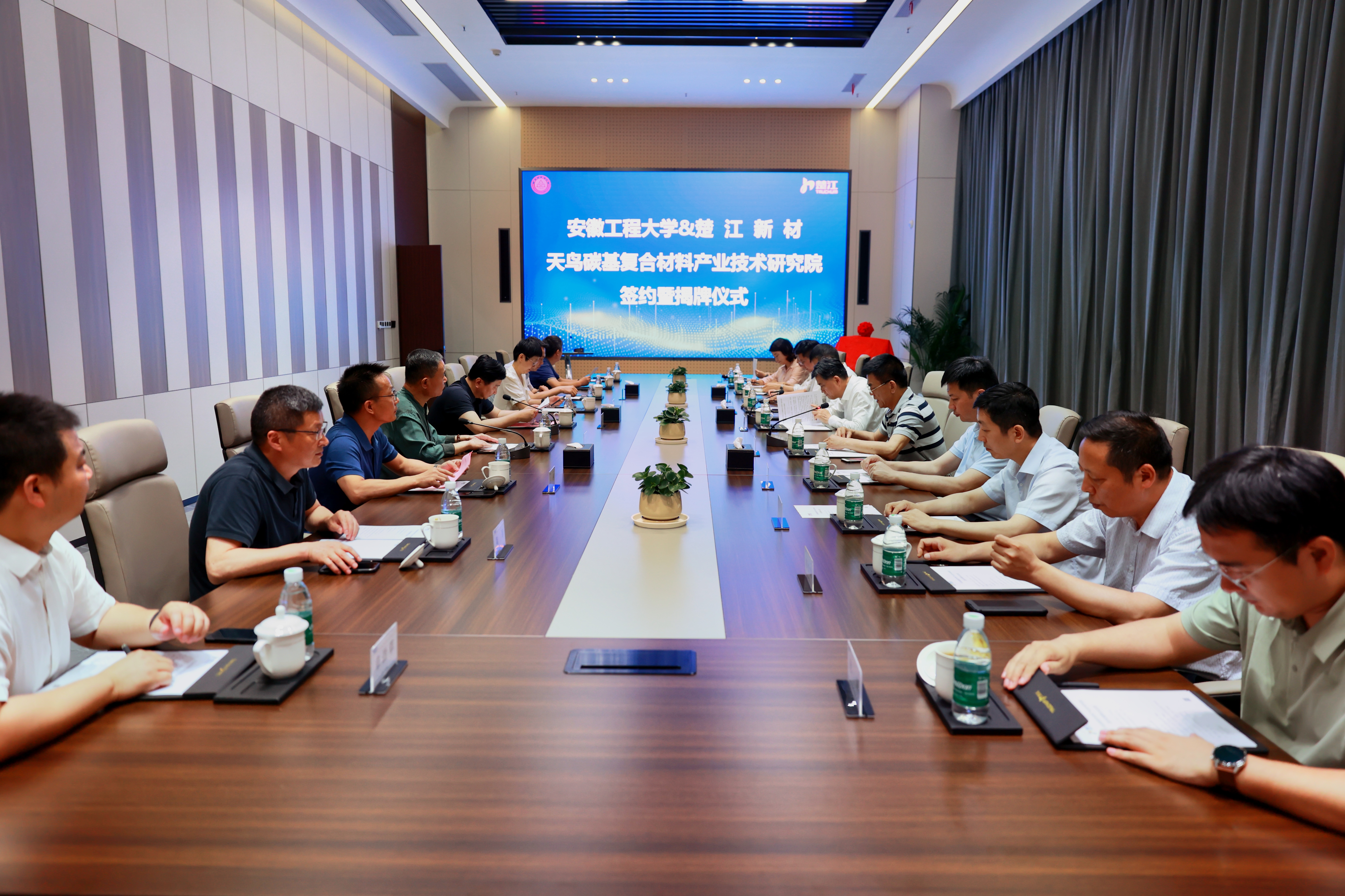王刚代表公司致辞。他指出,公司经过24年的发展,形成铜基和碳基新材料“双轮驱动”的新发展格局,公司将汇聚优质资源,支持研究院围绕碳基复合材料开展人才培养、技术研发和产品创新,促进实现校企人才链、资金链、创新链、产业链的深度融合,为芜湖的新材料产业和省域副中心城市建设做出更新更大的贡献。方忠代表鸠江区政府致辞。张志宏、方忠等共同为研究院揭牌。学校科技处处长凤权,王刚分别代表校企双方签约。姜纯为首任研究院院长阮芳涛博士颁发聘书。