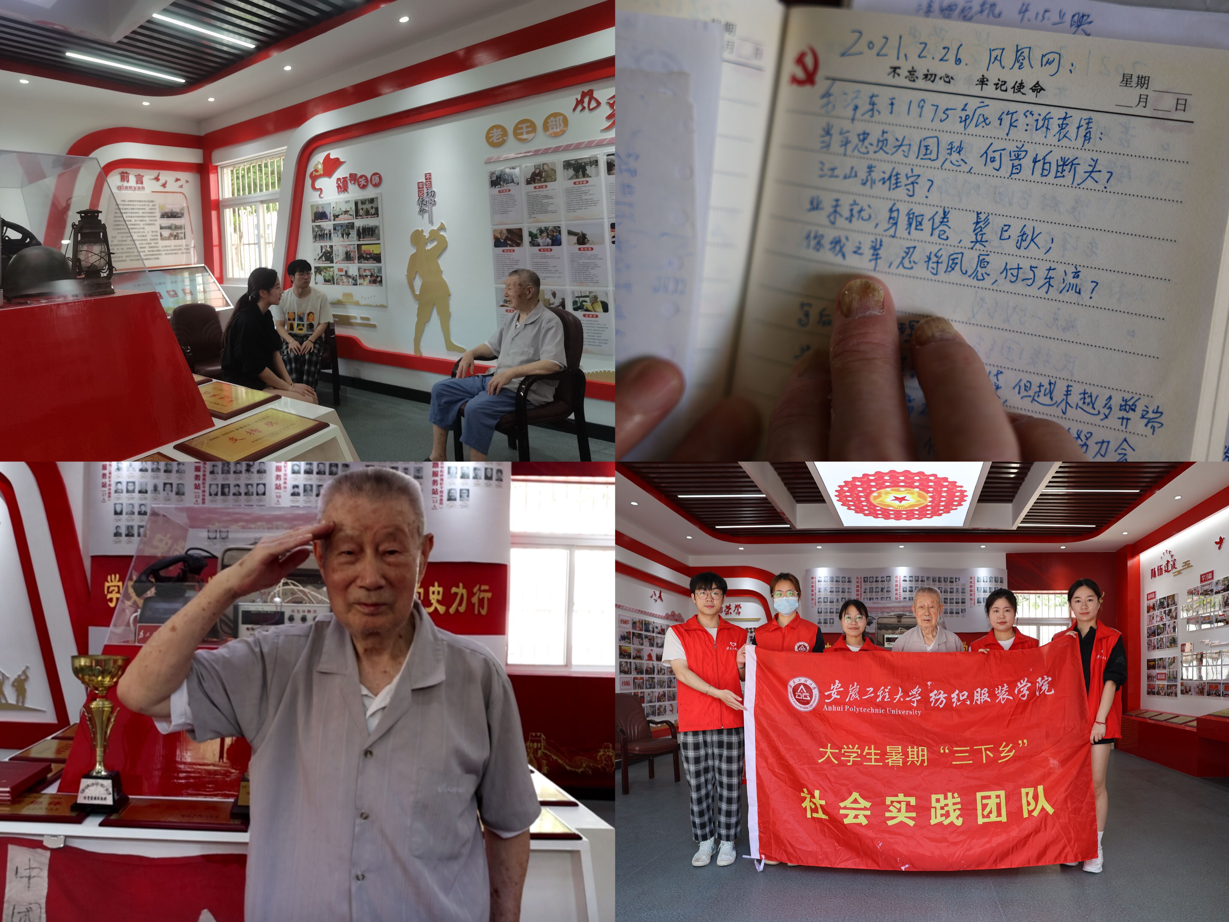 进一步赓续红色血脉、弘扬革命传统,充分挖掘离休干部身上蕴藏的红色历史和宝贵精神财富,7月起至86日,纺织服装学院暑期“三下乡”社会实践团队“桑榆心向党,青春暖人心”为主题,对安徽省军区芜湖第二离职干休所部分离休干部进行了深度红色挖掘,让老干部的重要史实、优良传统、革命精神留下来、传下去,让英雄的故事历久弥新。