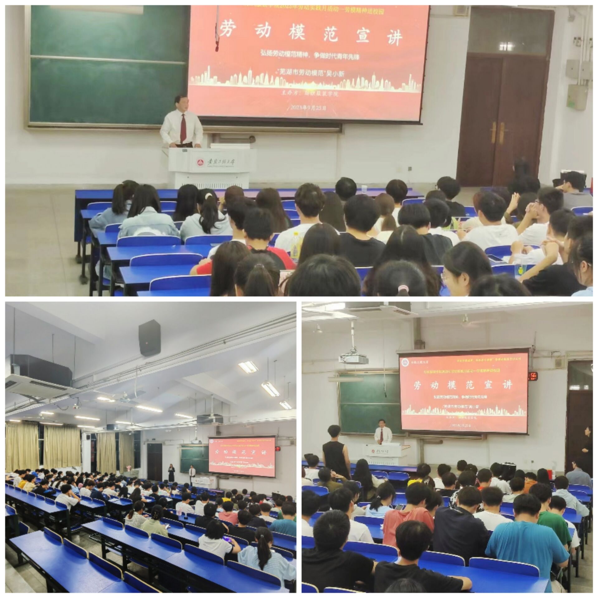 925日,纺织服装学院邀请芜湖市劳动模范吴小新来校开展“讲述劳模故事 传承奋斗精神”劳模进校园宣讲活动,纺织服装学院师生代表参加了此次报告会。
