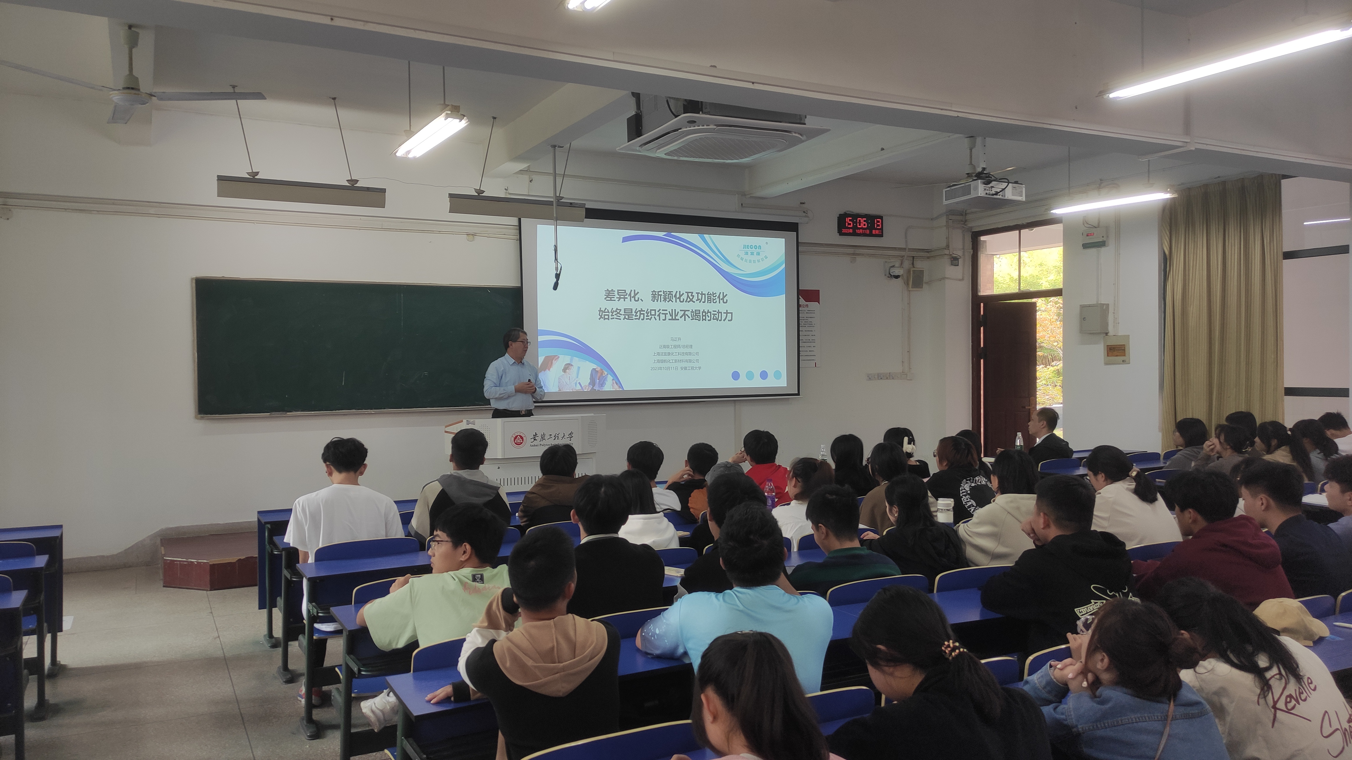 为进一步深化产教融合、校企合作,1011日,纺织服装学院邀请双聘博士(上海洁宜康化工科技有限公司)马正升教授级高级工程师为纺织工程、非织造材料与工程专业23级新生以及轻化工程专业22级在校生上了一次题为“差异化、新颖化及功能化始终是纺织行业不竭的动力”精彩课程。