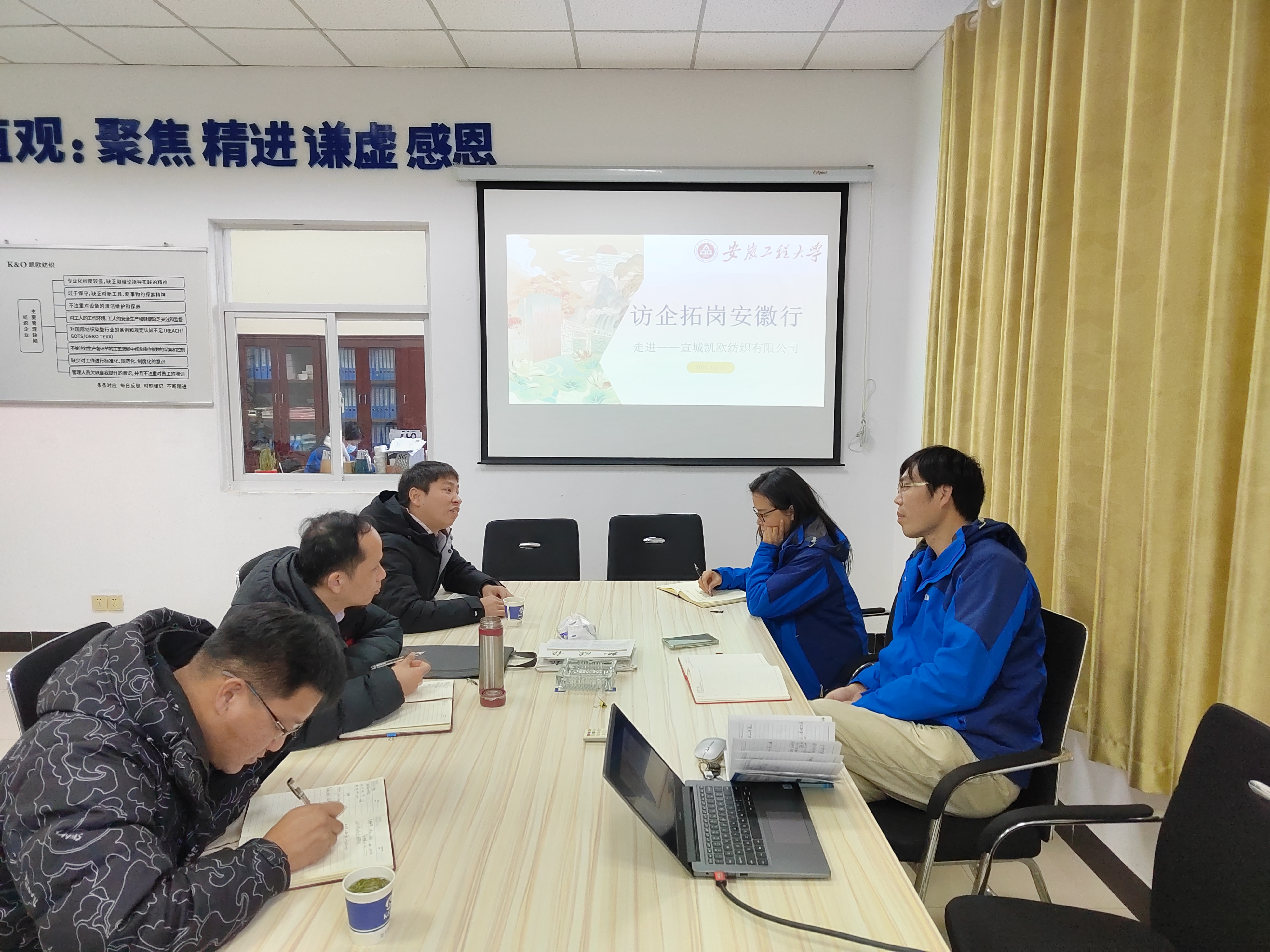 促进2024毕业生高质量就业和留皖就业纺织服装学院积极开展“访企拓岗安徽行”专项活动。116副院长陶旭晨带轻化系教师走进宣城凯欧纺织有限公司深入交流公司人才需求情况。