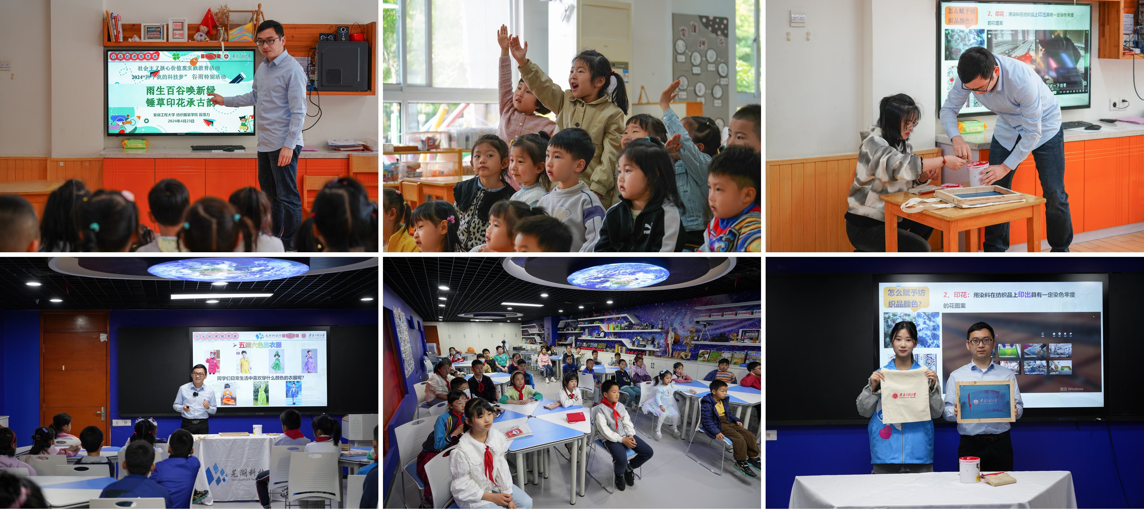 纺织服装学院“行走的课程思政”公益团队以“种下我的科技梦”为主线,在谷雨特别活动中让少年儿童近距离体会传统文化技艺与现代染织技术的碰撞,在感受生机盎然大自然的同时,了解到奇妙的纺织印染技艺,进一步弘扬与传承中华优秀传统文化。