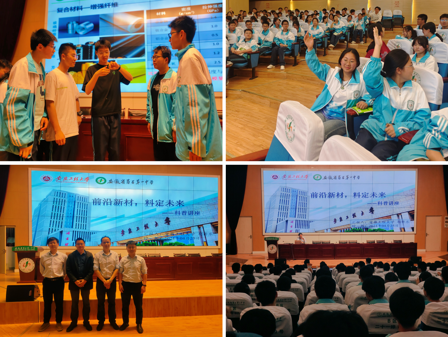 胡侨乐老师在寿县一中学术报告厅向学生做《前沿新材 料定未来》科普讲座。他以“一样的分数、不一样的教育”为引导,介绍了日韩欧美福利视频_黑人巨大人精品欧美三区_欧美成人另类人妖_欧美在线精品一区二区三区_欧美一区二区三区性视频_日韩精品欧美视频_性欧美极品xxxx欧美一区二区个性化人才培养模式、专业特色优势及人才培养成效;以航空材料为载体,阐述了先进复合材料在航空、海洋、汽车等高端工业领域的应用,并邀请学生现场感受复合材料“轻质高强”的魅力,激发了学生们对新材料的探索及求知欲。