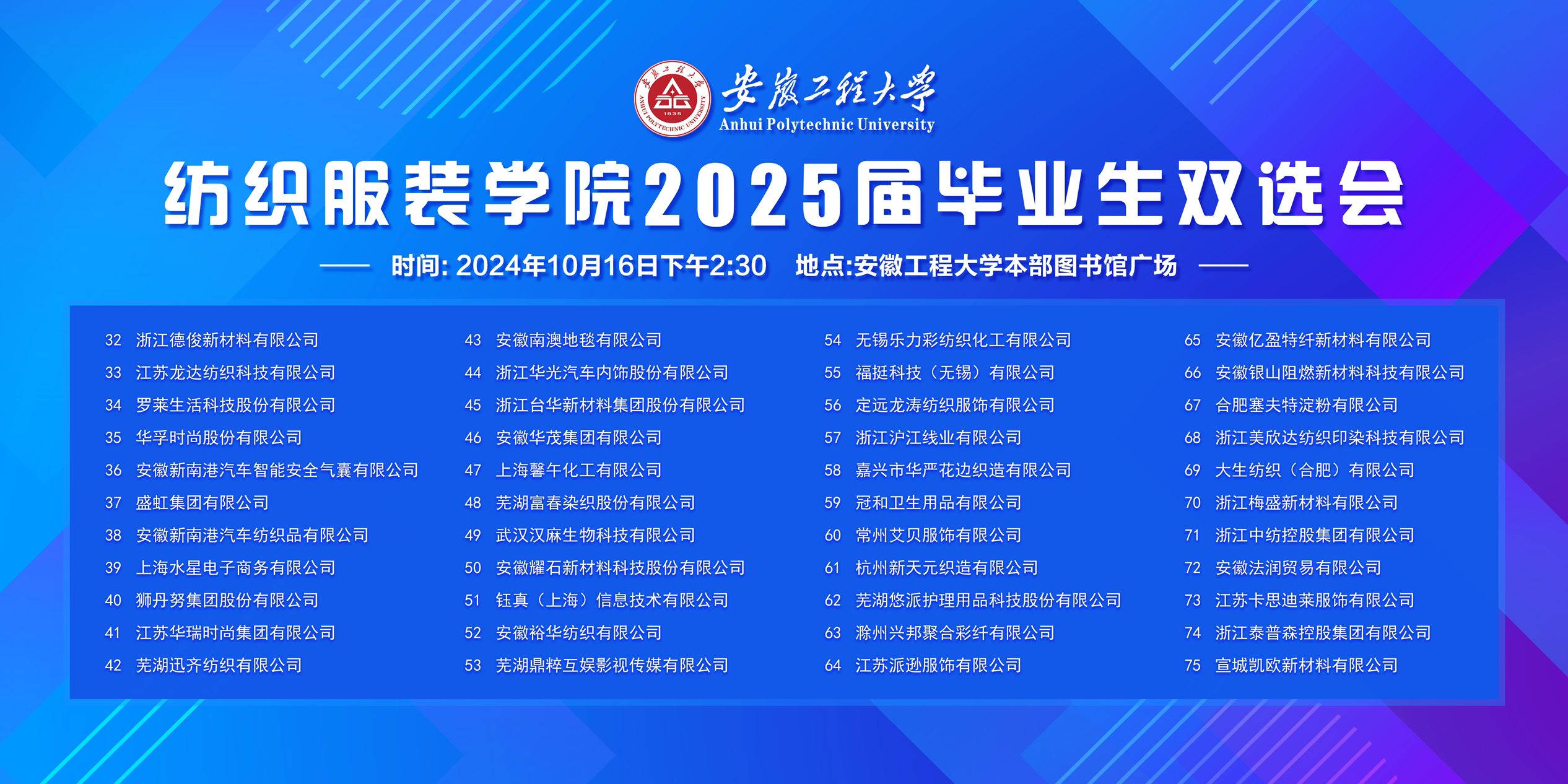 1016日,纺织服装学院在图书馆广场举办2025届毕业生秋季双选会,来自省内外43行业企业参加,我院3002025届本科生、研究生前来求职