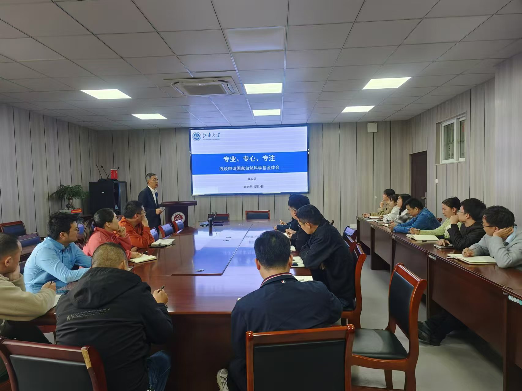 随后,教育部新世纪优秀人才、江南大学魏取福教授为学院教师做了一场“专业、专心、专注”的基金辅导报告。魏取福以国家基金申报典型案例剖析了基金申报书在撰写过程中的注意事项,从基金选题、关键科学问题、立项依据、研究内容、创新性等各个环节进行了全面深入的阐述,向参会老师讲授了基金申报的宝贵经验。他鼓励教师们要注重前期科研的成果积累,为后期申报工作打下坚实基础。