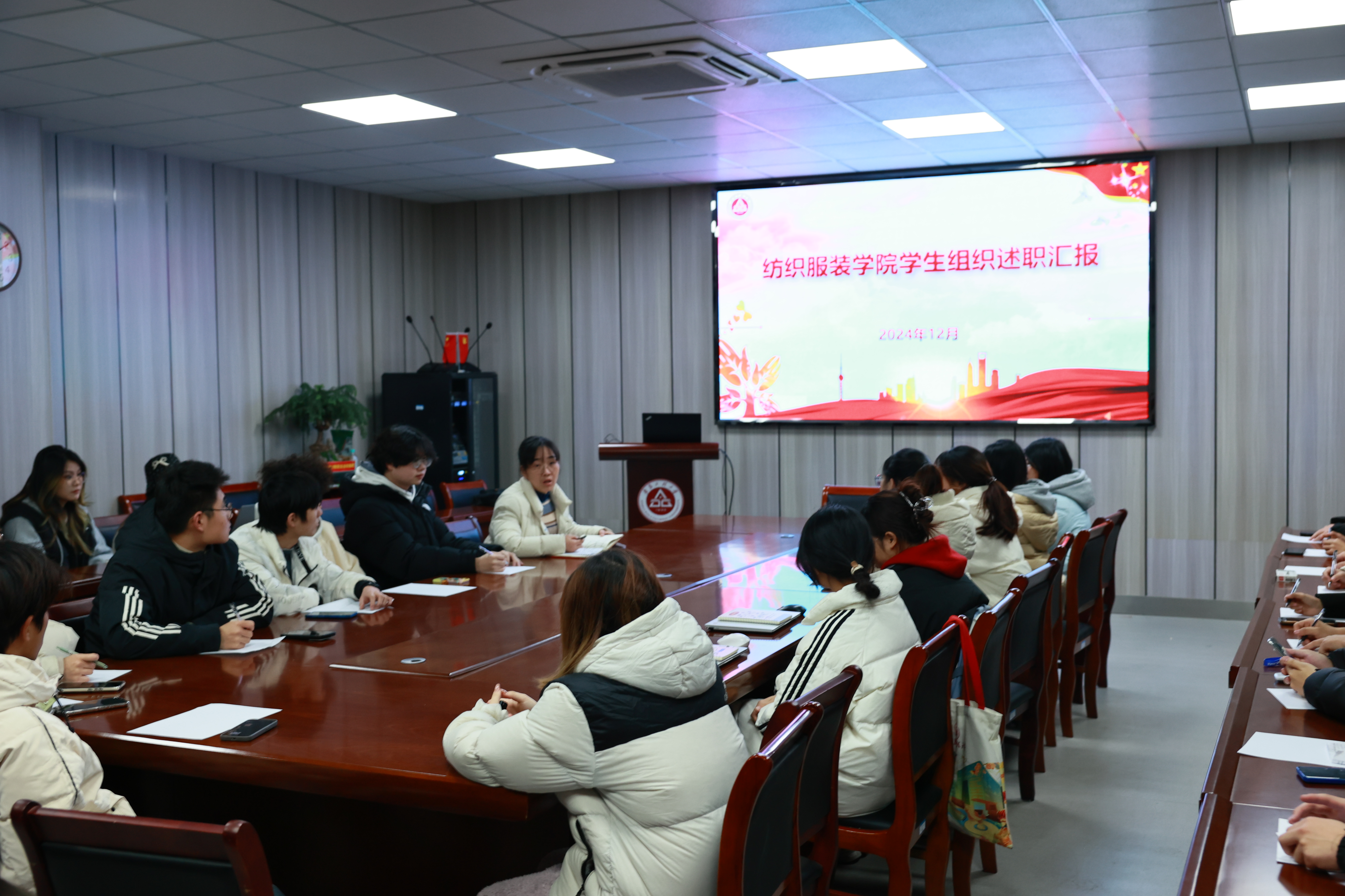 12月30日,纺织服装学院于D座413会议室举行学生组织述职汇报会。院团委负责人、学生会主席团成员、各部门负责人、学生代表参加会议。会议由院团委书记陈倩主持。
