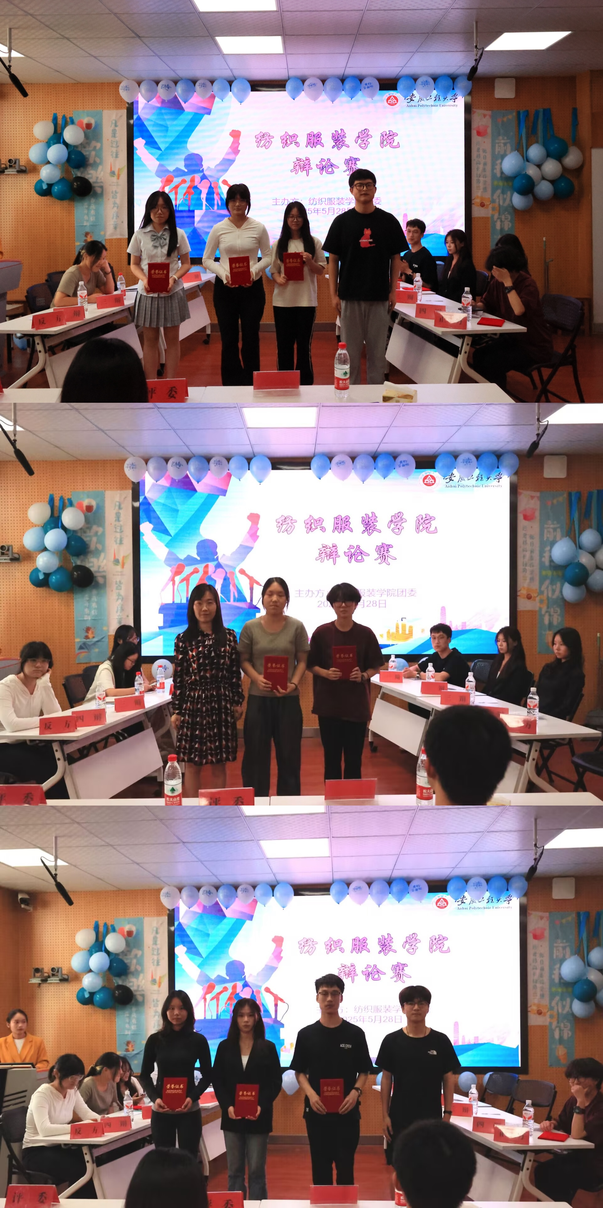5月28日,纺织服装学院在D座601举行了一场以“面对精神内耗,应接纳还是鞭挞自己”为主题的辩论赛。学院团委书记陈倩、主席团成员和学生代表观看比赛。