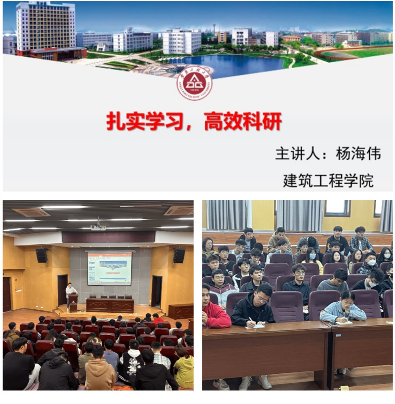 为深入落实学校关于“三抓”和“三全六专”的工作要求,培养我院研究生和本科生的科研及学习能力,提升大家的科研素养,3月15日下午,建筑工程学院在C座三楼报告厅组织开展了“长学识、促科研,争创新”专题讲座活动。本次活动的主讲人分别是建筑工程学院本科生兼研究生辅导员杨海伟老师和湖南纬度信息科技有限公司刘俊老师,建筑工程学院全体研究生,建筑20级、工程管理20级和给排水20级的本科生参加此次讲座活动。