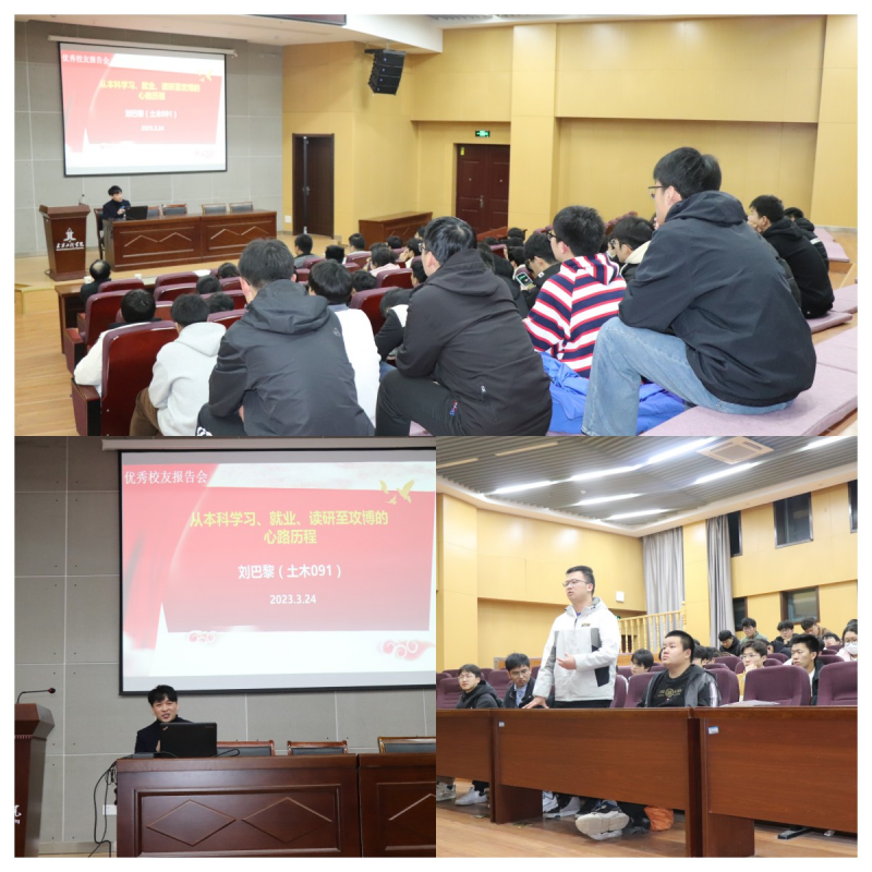 报告会现场气氛热烈,土木工程专业学生及时与学长互动交流,时时响起热烈的掌声。通过学长解答,同学们纷纷表示受益匪浅。就业创业大讲堂暨优秀校友报告会是进一步落实学校“三抓”理念和“三全六专”育人工作的重要举措,通过辅学助学、事迹报告、社会实践、参观学习等形式,充分发挥朋辈教育的引导和榜样作用,为广大学生在学业、就业、创业等领域提供有益的参考,积极服务青年大学生的成长成才。