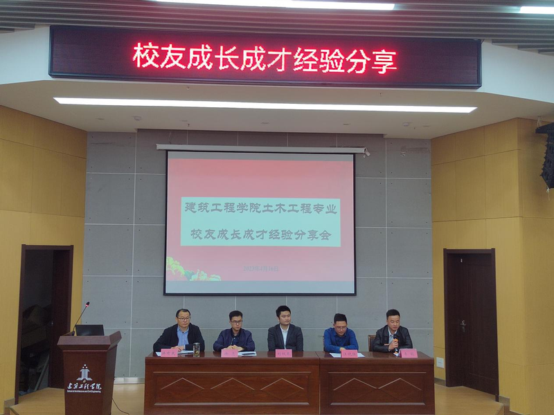 2022年4月16日上午,建筑工程学院在C座三楼报告厅举办就业创业大讲堂暨土木081毕业十周年优秀校友报告会。优秀校友李毅(安徽长宏建筑装饰工程有限公司总经理)、汪晓强(中建八局第三建设有限公司项目经理)、徐亮(安徽省城建设计院市政设计三院道桥所主任工程师)、刘权胤(芜湖市委宣传部新闻外宣办主任)应邀出席。土木专业系主任韩有民主持报告会,辅导员赵恒芳以及一百多名学生报名聆听校友报告。
