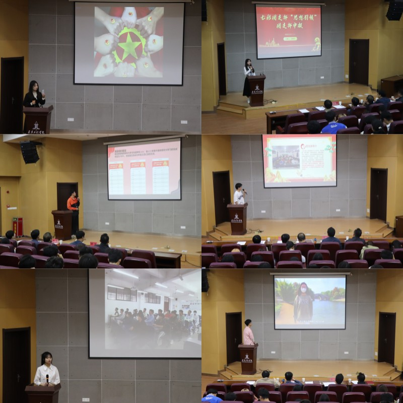 决赛终审答辩活动中国共青团团歌《 光荣啊,中国共青团》的恢弘曲调中拉开帷幕。各团支部通过精心制作的短片全面展示本支部的建设工作,以PPT演讲的形式介绍团支部如何发挥模范带头作用和目前取得的成绩。在思想引领方面,建筑222和给排水221班团支部以主题团日活动为契机,展示了学习习近平新时代中国特色社会主义思想尤其是习近平总书记关于青年工作的思想、党的二十大会议精神、青年大学习等方面的记录图片,并结合各团支部特点开展团员思想教育评议等活动,做好思想引领工作。在学风建设方面,建筑221班和工程212班团支部用短视频展示了同学们孜孜不倦,刻苦学习的精神,以及自入学以来取得的学习成果。在组织建设方面,土木212和工程222班团支部展示了班团一体化建设成果,围绕班级纪律、班干团队、班风班貌等进行建设,成效明显。在创新创业方面,工程211和给排水211班团支部成员展示了支部成员的创业认识和创业计划,大家积极参加各类创新创业实践活动,获得各类竞赛奖项。在志愿服务方面,给排水212和工程221团支部成员有强烈的志愿服务意识,大家利用课余时间积极参加“团百花”“丁香花”学雷锋等志愿服务行动,奉献自我、完善自我,实现自我在志愿活动中的人生价值。在社会实践方面,建筑212和土木214团支部积极引导组织成员参加各类社会实践活动,在做好个人保护的同时,加强团员的思想意识和实践创新能力,取得了一定的荣誉奖项。在新媒体建设中,土木211和土木221团支部展示了新媒体组织运营方式和作用发挥情况,在校内校外通过网络平台发布、开展、记录活动的形式展示了他们在新媒体工作的成效。经过两个多小时的激烈角逐,工程211班团支部、建筑221班团支部、给排水221班团支部、工程222班团支部、工程221班团支部、建筑212班团支部、土木211班团支部荣获第七届“七彩团支部”称号。