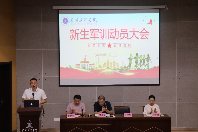 9月11日下午,建筑工程学院2023级新生军训动员大会在C座3楼学术报告厅召开,全体新生统一着装,以军训班排为单位,整齐列队。学院党委副书记张礼波、院团委负责人、2023级新生辅导员参加会议。会议由苏伟刚主持。