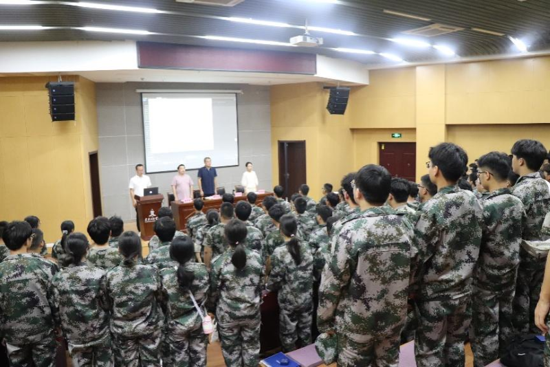 黄贤君解读了军训日程安排,宣读了军训序列编制和军训场地安排及班排长名单等。王宇帆宣读了军训日常管理与工作要求,并对学生军训先进集体、先进个人评比办法进行讲解。工程管理231陈天宇同学代表全体新生在发言,他表示,军训期间严格要求自己,听从指挥,敢于吃苦、勇于拼搏,争做新时代奋发有为的好青年。