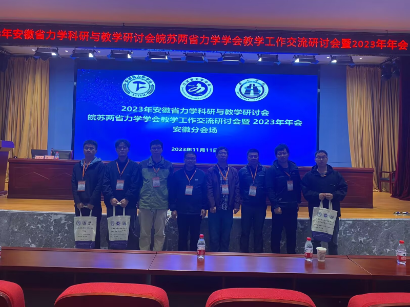 2023年11月11日至13日,2023年安徽省力学科研与教学研讨会-皖苏两省力学学会教学工作交流研讨会暨2023年年会在安徽黄山隆重召开。我院力学教学部教师葛仁余、廖斌、卜洋与研究生马亮亮、张龙飞、姚乐参加了此次交流研讨会。