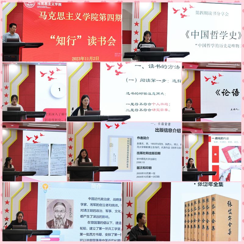 为深入学习习近平文化思想,贯彻落实党的二十大关于文化建设的战略部署,督促同学们多读书、读好书,养成良好的读书习惯,11月2日晚上,马克思主义学院举办了第四期硕士研究生“知行”读书会。本期读书会主题为马克思主义与中华优秀传统文化。刘聪教授和张刚教授作为指导老师参加读书会,马克思主义学院副院长李海涛、学院全体研究生参加此次活动。