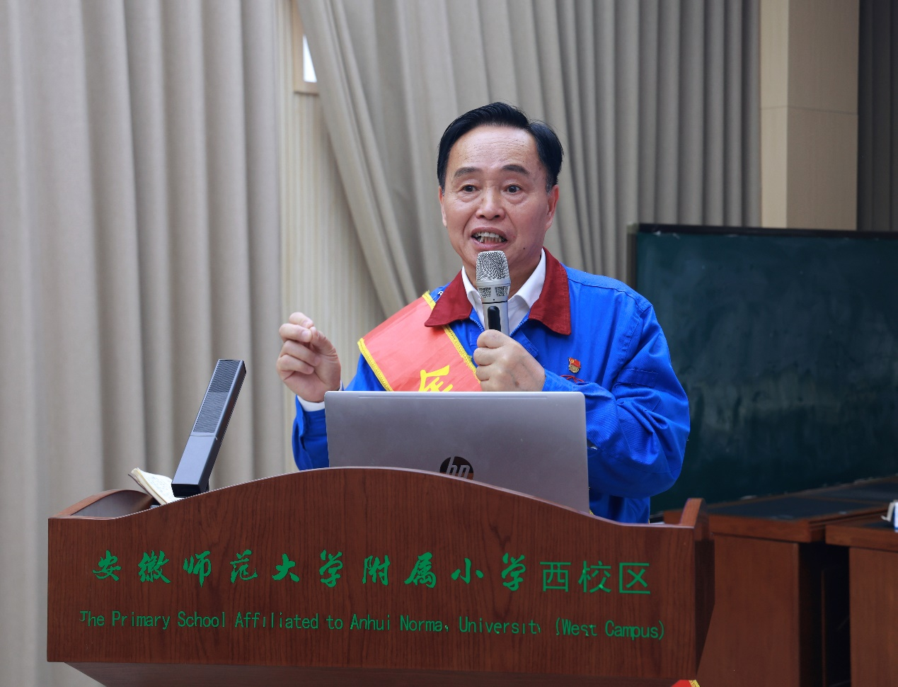 为深入贯彻落实习近平总书记关于劳模精神、劳动精神和工匠精神的重要论述,充分发挥劳模工匠示范引领作用,推进大中小学思想政治教育一体化建设,5月9日,芜湖市产业工人队伍思想政治工作研究中心联合安徽师范大学附属小学西校区,开展主题为“童心对话劳模 榜样助力成长”的劳模工匠进校园活动。马克思主义学院副院长李海涛、教师夏雨清参加活动。