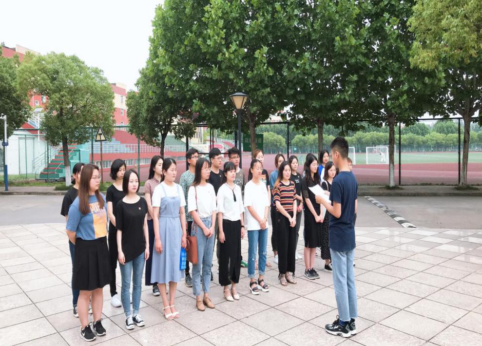 6月17日清晨,随着鲜艳的五星红旗冉冉升起,铿锵有力的国歌余音落地,外国语学院毕业班党员参加完升旗仪式,开展了“不忘初心 牢记使命”重温入党誓词主题教育活动。