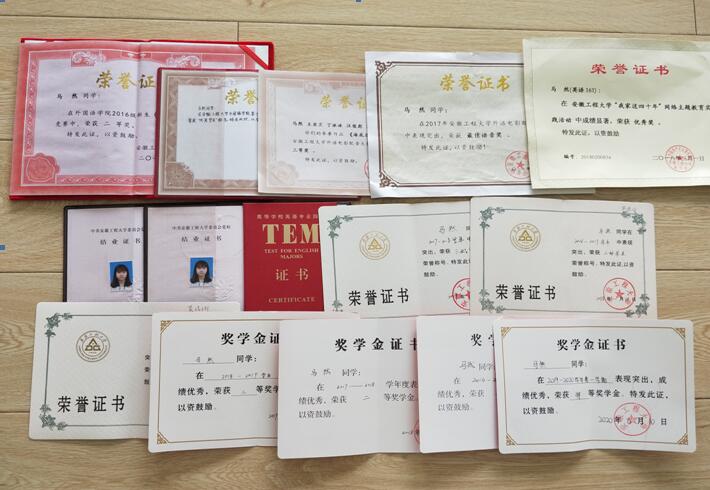 获奖情况:校特等奖学金、校二等奖学金、三好学生。