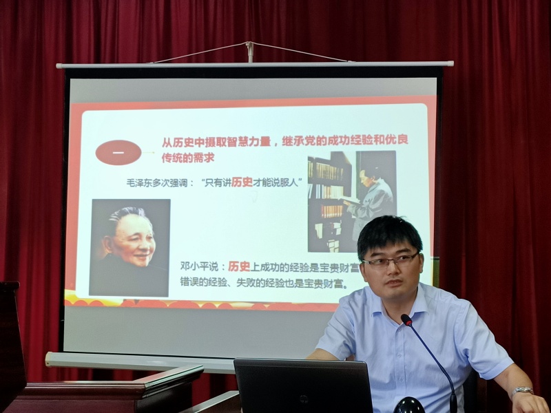 为深入开展党史学习教育活动,6月23日下午,外国语学院党委在9J602开展党史学习教育宣讲。校党史学习教育宣讲团成员、校办公室主任、外国语学院党委书记郑千里为全院教职工和学生党员代表进行专题宣讲。