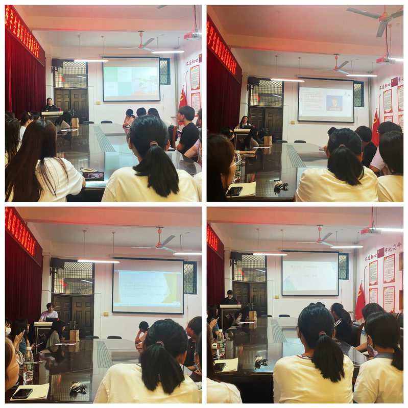 仪式结束后,临时党支部开展集中理论学习并组织了第一次主题党日活动。支部成员重点学习习近平总书记在庆祝中国共产主义共青团成立100周年大会上的讲话、总书记在中央政治局会议上关于疫情防控的讲话以及学校关于做好暑期留校学生教育管理工作的通知内容。支部党员同学通过腾讯会议与暑期在家同学现场连线,对考研复习状况做阶段性总结,分享学习安排、复习进度、好的学习方法以及存在的困难,19级全体同学线上、线下参与分享交流全过程。其中英语193班淳清萌同学在发言之前通过几张图片向所有同学展示了学校暑期新变化。她说,“这是学校新修的路,很平整;这是翻新好的女2栋,焕然一新;这是宿舍新装的网线,以后上网再也不卡了;这是即将拆除的一食堂,我替你们图片保存了”。短短几句,“惹”得大家纷纷线上留言表示很是想念学校。同学们表示,此次考研阶段性总结分享会联系了同学情谊、交流了学习方法,明确了复习计划,获益颇深。更有同学感叹,“看到留校同学那么努力,我要赶紧克服惰性,迎头赶上”。