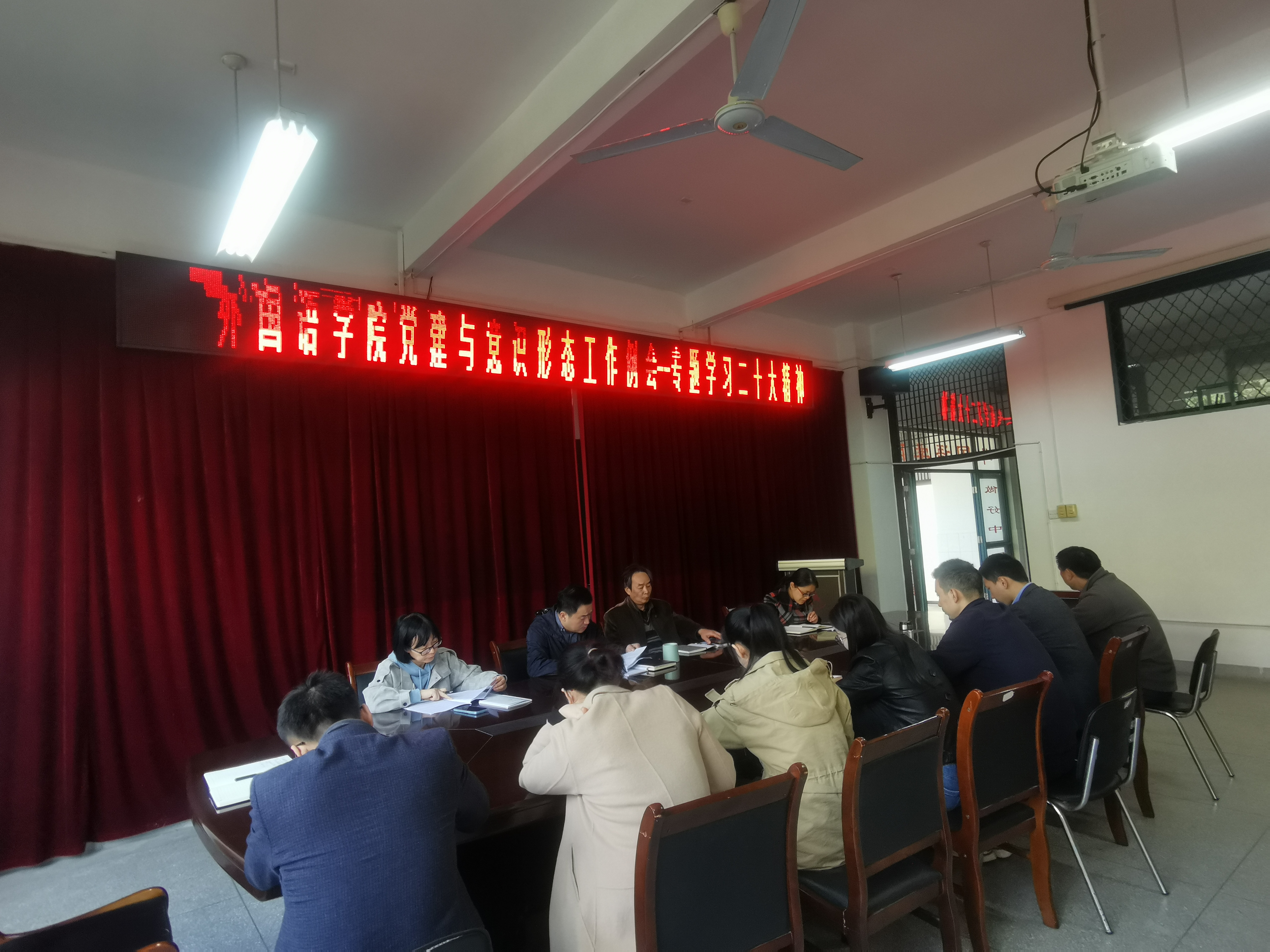 近日,外国语学院把学习好、宣传好、贯彻好党的二十大精神作为当前和今后一个时期的首要政治任务,精心谋划组织,掀起学习宣传贯彻党的二十大精神热潮,将党的二十大精神入脑入心。
