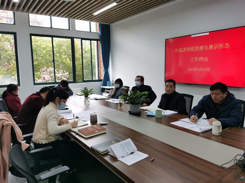 3月22日上午,外国语学院于9J211会议室召开党建与意识形态例会扩大会议,学院党委委员、党支部书记、科级干部、辅导员参加会议,会议由院党委书记董金权主持。