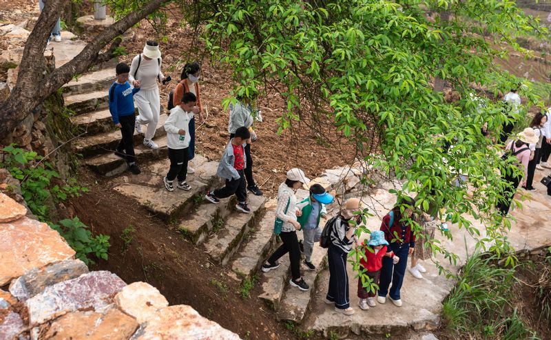 在龙山村支部书记、“中国好人”胡太平的带领下,教师们参观了龙山学院党员干部教育培训基地,详细了解了何家湾抗日革命烈士张洁亚英雄事迹、龙山村近年来的生态建设、乡村振兴、文化振兴等内容,通过今昔对比,教师们深刻感受到随着美丽乡村建设的推进,龙山村这个昔日深山小村的华丽蜕变。在涧滩村驻村干部文学飞的陪同下,老师们还游览了传统古村落——丫木脚、三叠瀑布以及当地靓丽的彩虹公路。