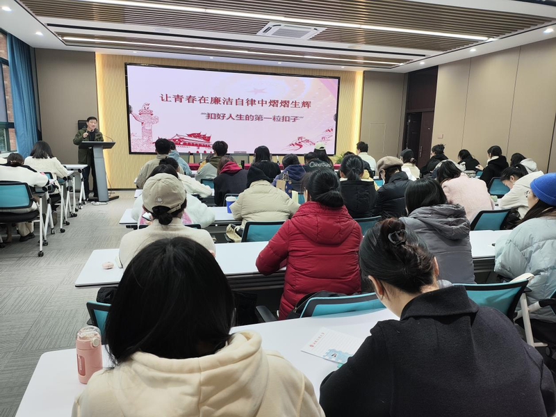 11月13日下午,外国语学院分党校邀请了校纪委办汪隽老师于9J209开展“让青春在廉洁自律中熠熠生辉 ‘扣好人生的第一粒扣子’”主题讲座,分党校所有学员、学院支委培训班成员参加学习,党校督导组进行听课指导。