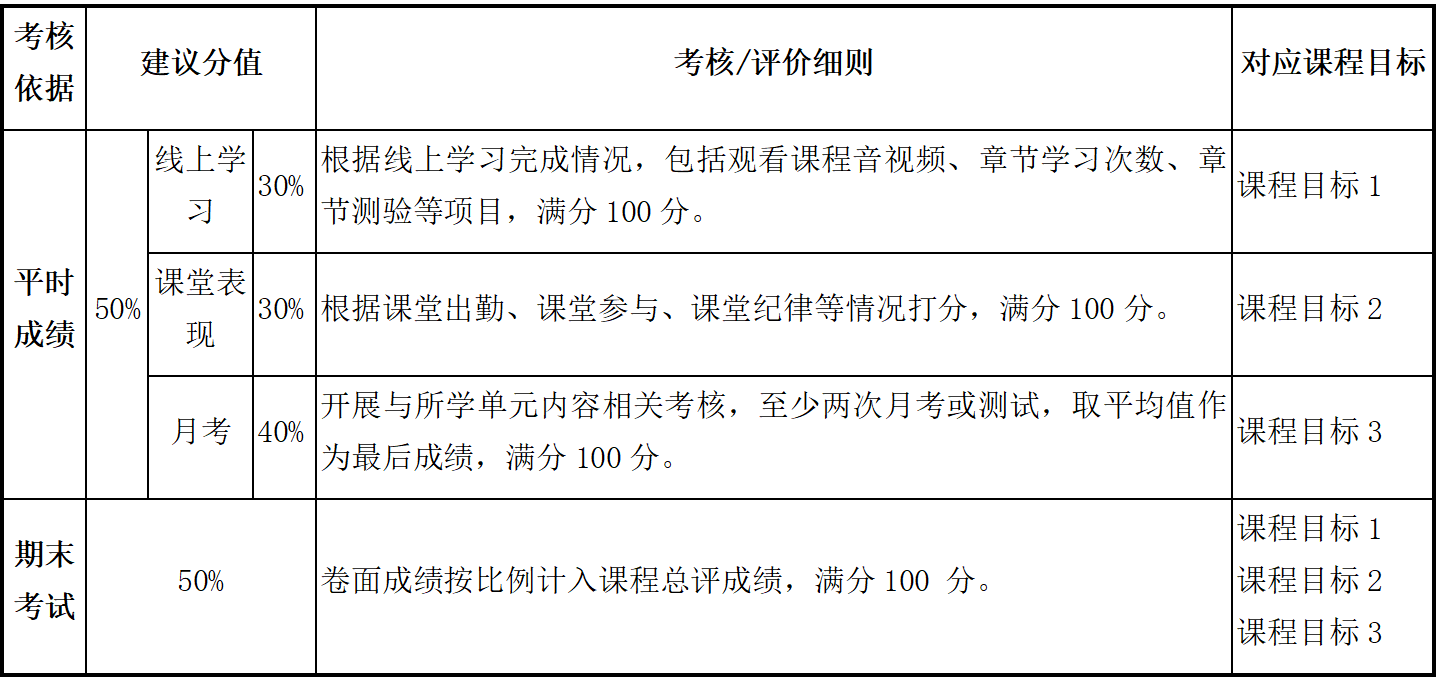 第四,制定了线上线下混合式教学大纲,实行形成性评价。依托学院的大英教学教学改革方案,修订了教学大纲的考核方式,将线上学习、课堂表现及月考纳入平时考核范围,有效调动了学生学习积极性和平时参与度。